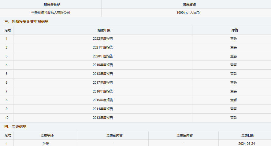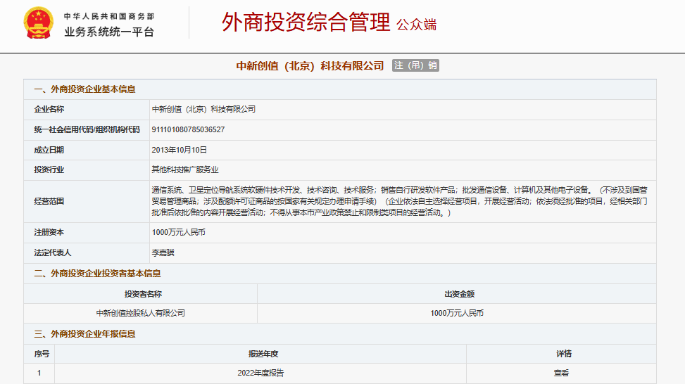 the People’s Republic of China through wholly owned subsidiary Zhongxin Chuangzhi (Beijing) Technology Ltd., Co.(中新创值(北京)科技有限公司) deregistered on 24 May 2024