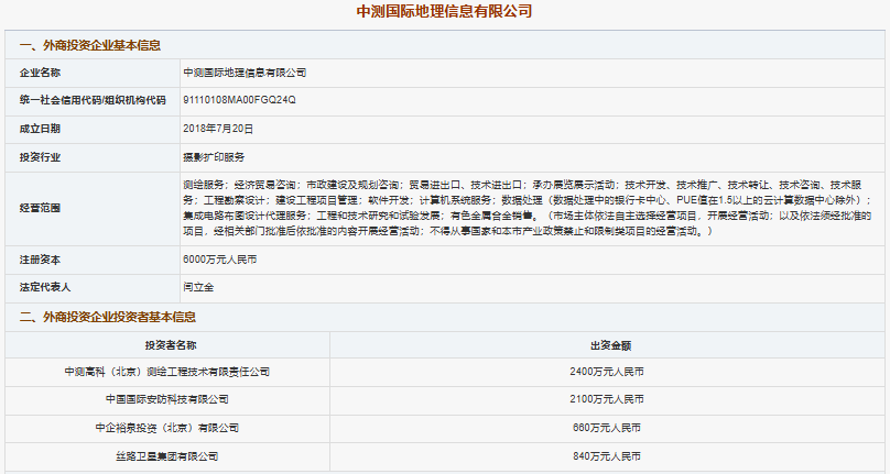 Zhongce Gaoke (Beijing) Surveying & Engineering Technology Co., Ltd. (中测高科(北京)测绘工程技术有限责任公司) — RMB ¥24,000,000